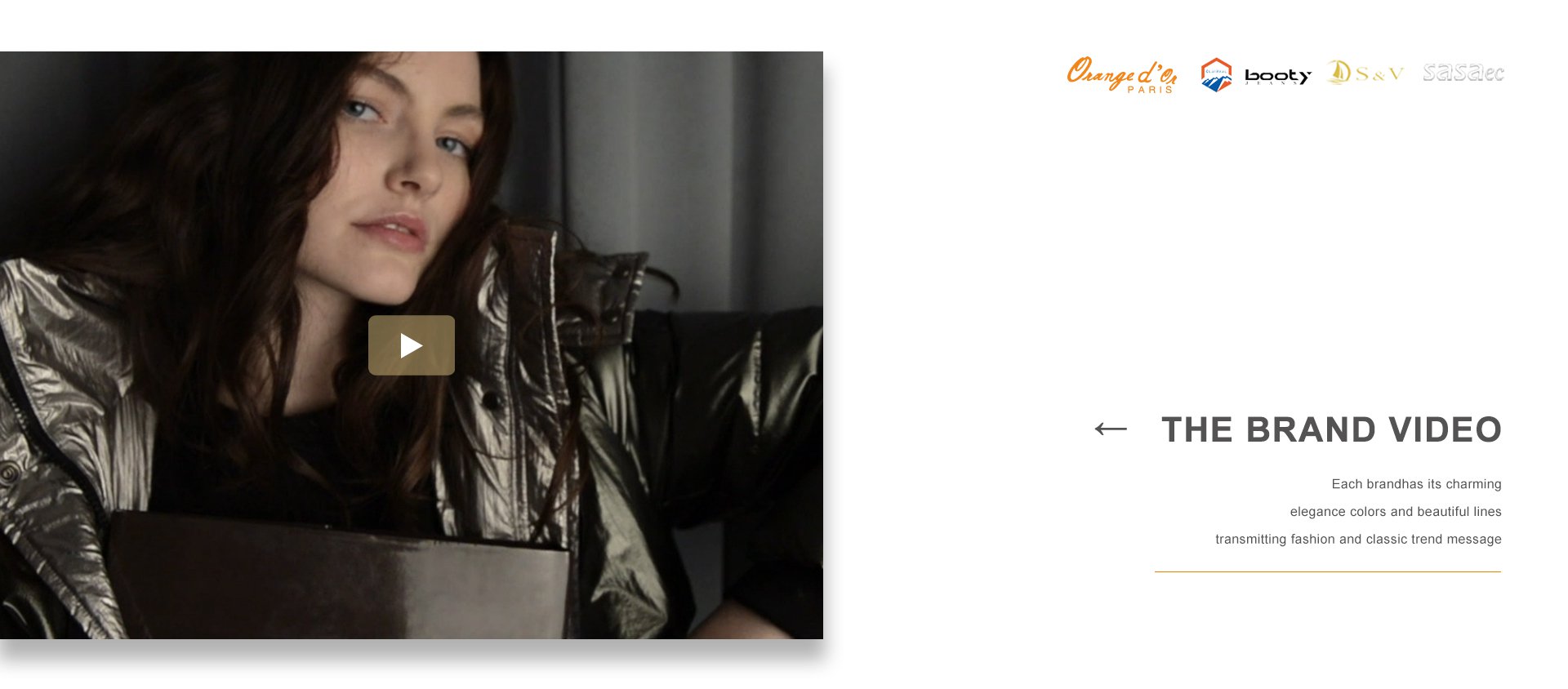 品牌建設是公司堅持不懈的追求,我們每年都會積極參加國內外舉辦的各大服裝展銷會。憑借著良好的質量與信譽,市場占有率在逐漸擴大,產品遠銷歐洲、美洲、亞洲等國。公司以生產棉衣、羽絨服、派克、大衣、夾克、運動休閑服飾等為主,旗下主打品牌有 ORANGE D’OR 、CLAIRVAL、BOOTY JEANS 、S&V和SASAEC,各品牌服飾均以典雅的色彩、優(yōu)美的線條、卓越的魅力吸引著都市麗人,將時尚、經典的潮流信息予以淋漓盡致的演繹。